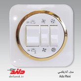 مشخصات ظاهری کلید و پریز دلند پلاس مدل آدا پلکسی سفید زه طلایی